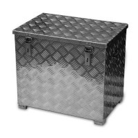 Aluminiowa skrzynia na kółkach TB2 została wykonana z aluminiowej blachy ryflowanej (grubość = ok. 2mm) i posiada gumową uszczelkę obwodową. Skrzynia wyposażona jest w 2 składane uchwyty, składane zapięcie ze stali szlachetnej i dwa zawiasy.