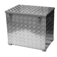 Aluminiowa skrzynia na kółkach TB3 została wykonana z aluminiowej blachy ryflowanej (grubość = ok. 2mm) i posiada gumową uszczelkę obwodową. Skrzynia wyposażona jest w 2 składane uchwyty, składane zapięcie ze stali szlachetnej i dwa zawiasy.