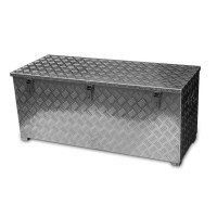 Aluminiowa skrzynia na kółkach TB4 została wykonana z aluminiowej blachy ryflowanej (grubość = ok. 2mm) i posiada gumową uszczelkę obwodową. Skrzynia wyposażona jest w 2 składane uchwyty, składane zapięcie ze stali szlachetnej i dwa zawiasy.